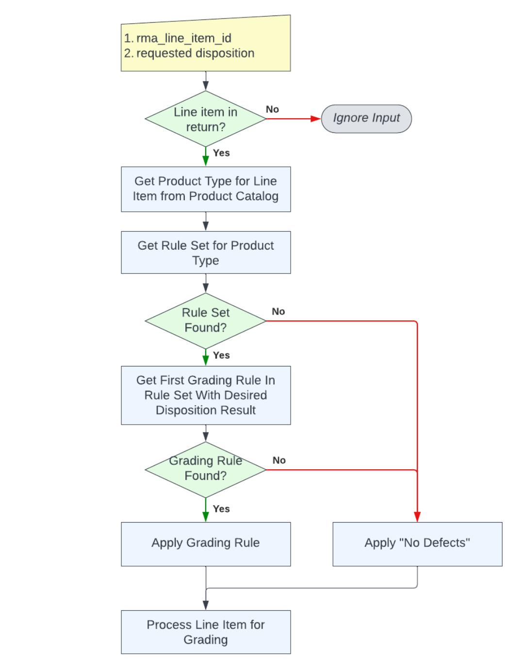 This means that any line item that is included in the simulate grading payload must map to a product type that is included in a Ruleset in the merchant's Two Boxes SOP. If the line item cannot be mapped via it's product type to a Ruleset, it will automatically be assigned a "No Defects" grade and a "Return to Stock" disposition, regardless of what's provided in the line_item_dispositions object.